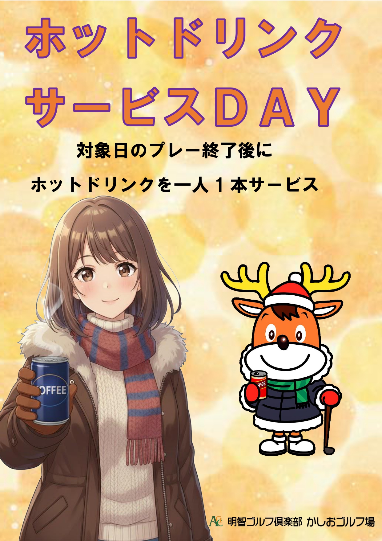 ホットドリンクサービスDAY 2025.12.08 2026年1月25日(日)~31日(土)、2月15日(日)~21(土)の期間を対象にホットドリンクサービスDAYを開催。 プレー終了後に暖かい飲み物はいかがですか。