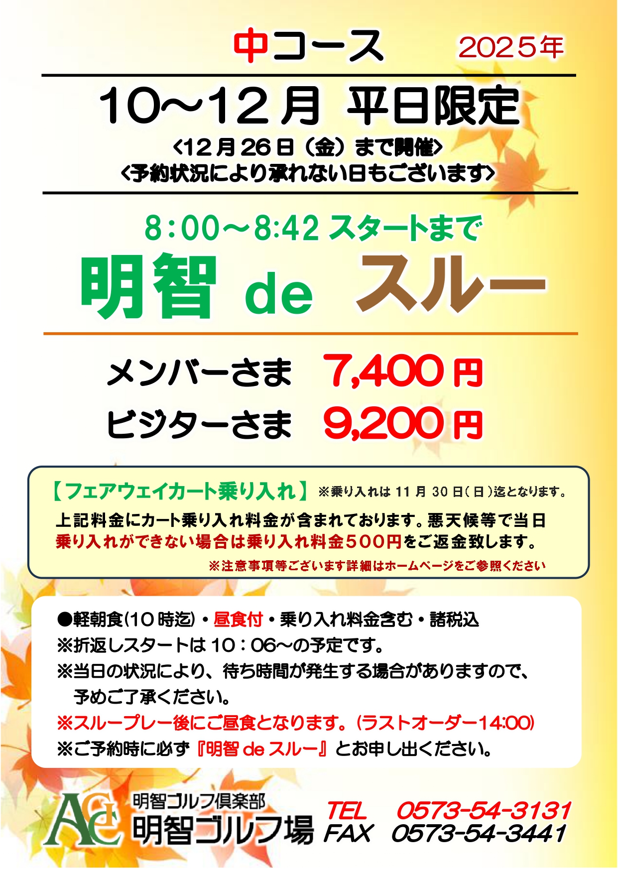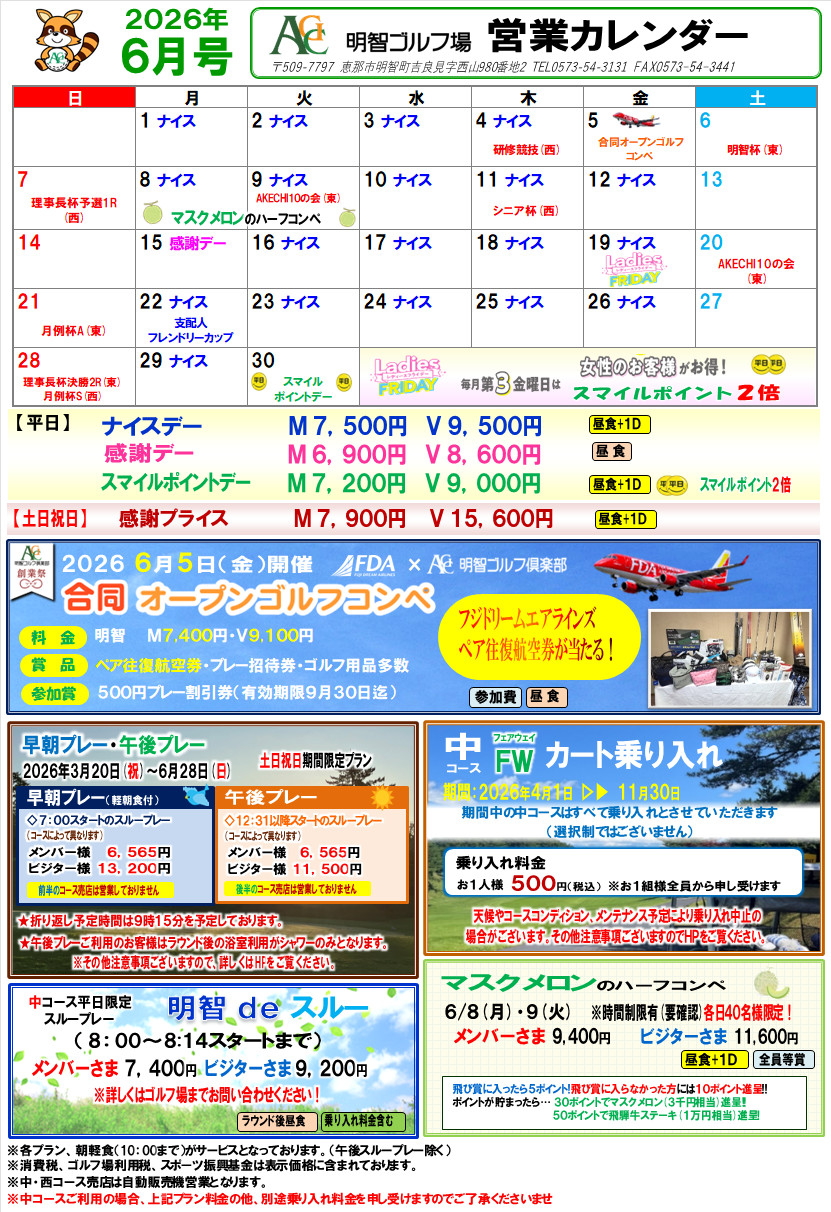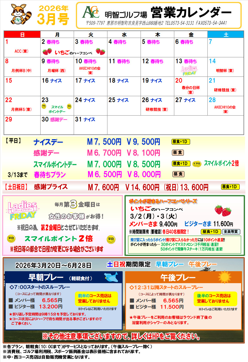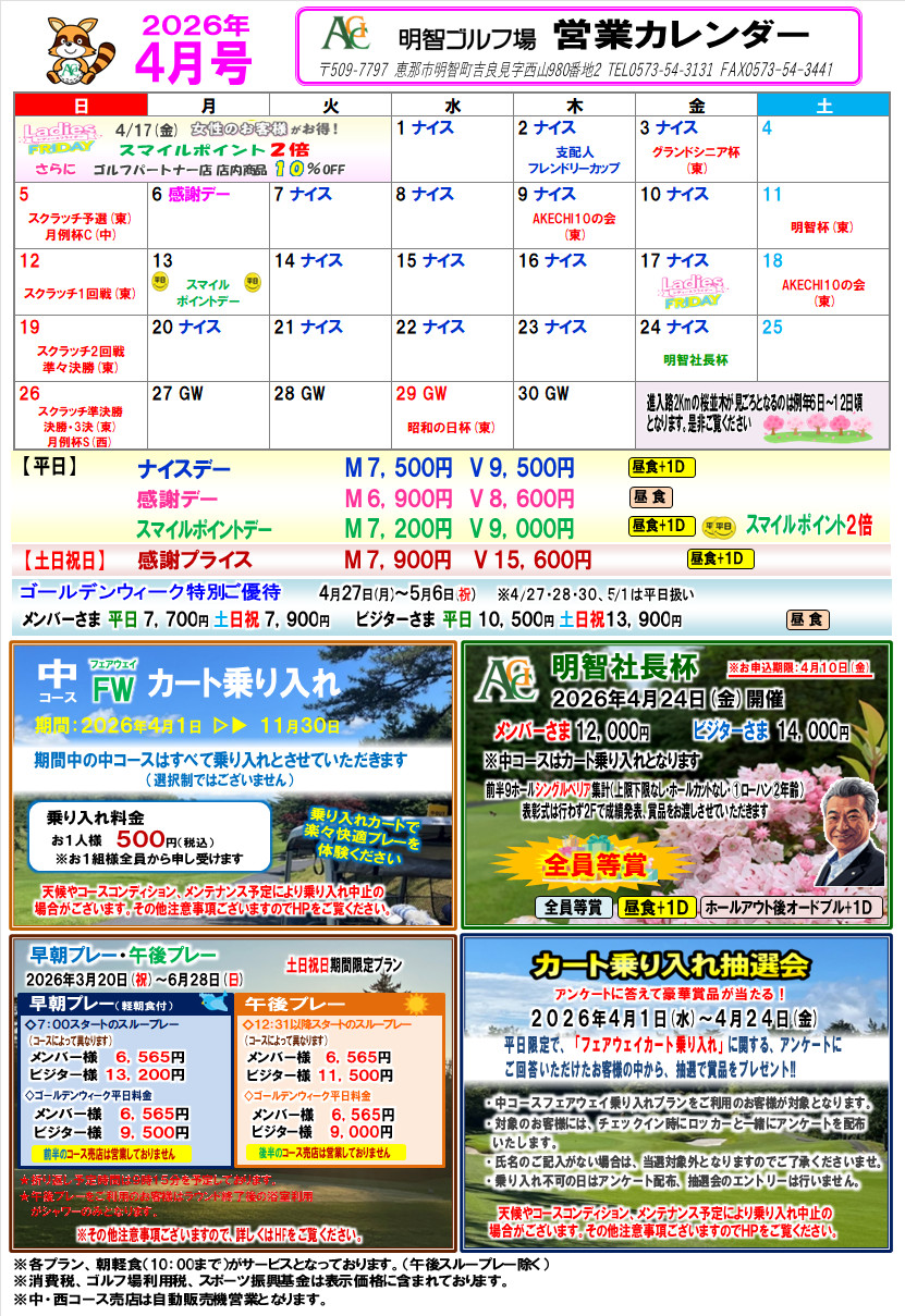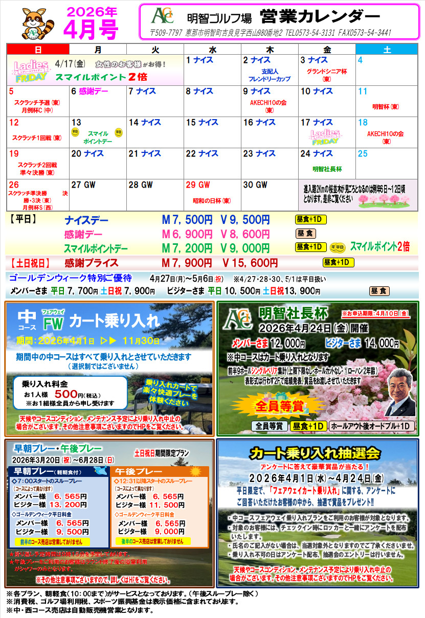 いつも明智ゴルフ場をご利用いただき誠にありがとうございます。