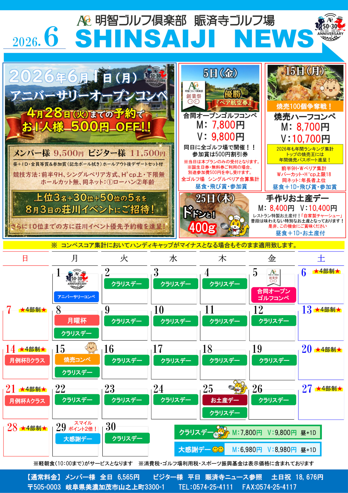 いつも明智ゴルフ俱楽部賑済寺ゴルフ場にご来場いただき、誠にありがとうございます。