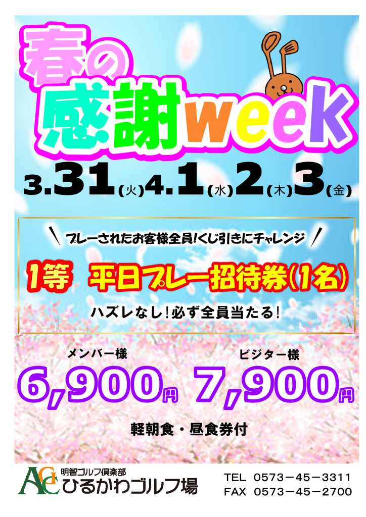 1等は平日プレー招待券(1名)!ハズレくじはございません!