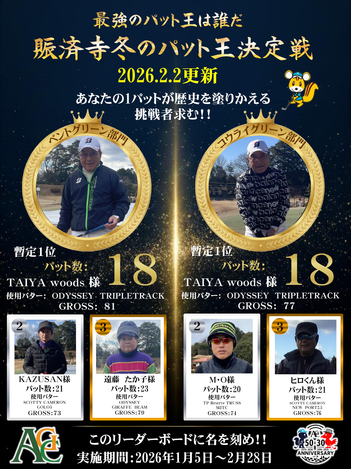 ☆☆ パット王暫定ランキング ☆☆ 2026.2.2(月)更新!