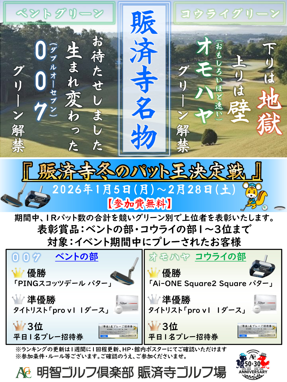 『賑済寺冬のパット王決定戦』 2026.1.5(月)〜2.28(土)