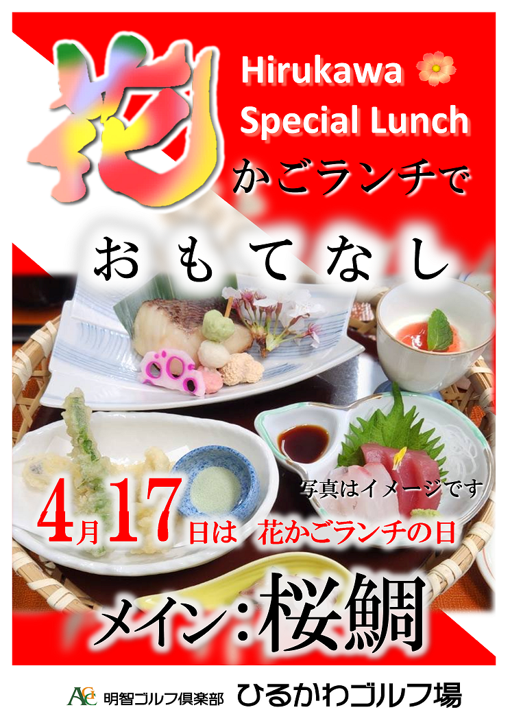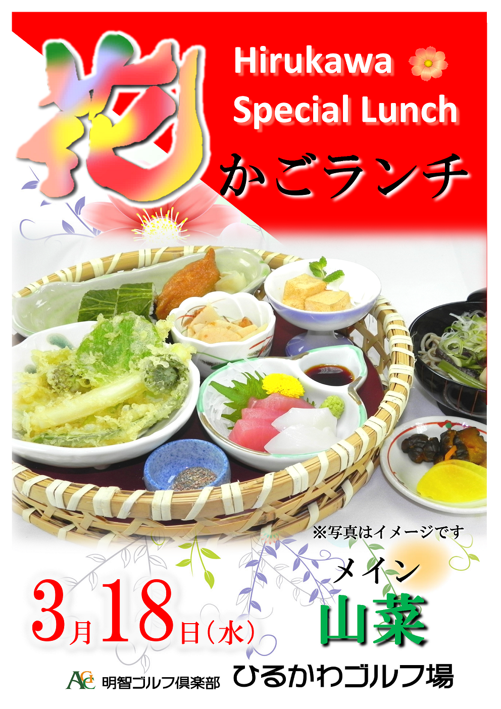 レストラン イベントのご案内 イベント詳細 日付: 2026.03.18 カテゴリ: ひるかわゴルフ場 ひるかわゴルフ場レストランよりお知らせ。 花かごランチデー 平日スマイルポイント2倍! 季節の食材を使用したちょっと贅沢なランチをご提供!! 3月のメインは山菜となります。 メンバー様のご予約はこちら >>> ビジター様のご予約はこちら >>>