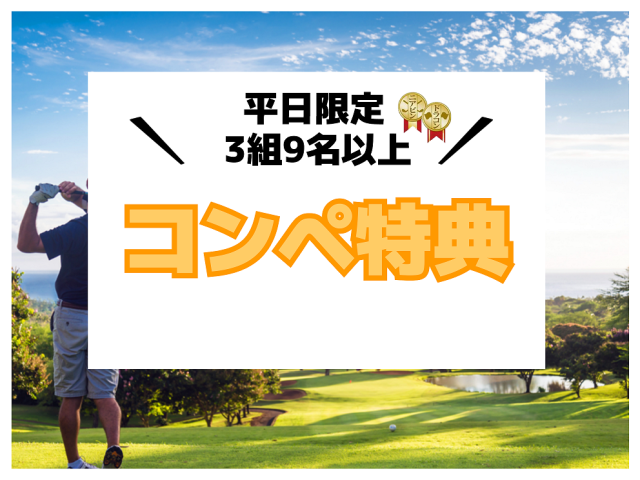 - 平日3組9名様以上プレーのコンペ様へ 素敵な特典のご案内です。 平日コンペ特典
