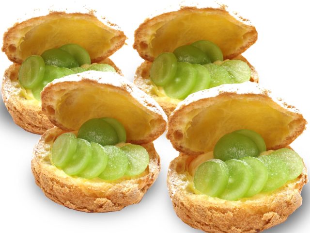 - 賑済寺自家製のカスタードクリームに旬のフルーツをたっぷり乗せました。お土産スイーツの自信作です。※フルーツは季節によって変更いたします。