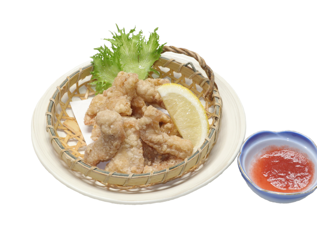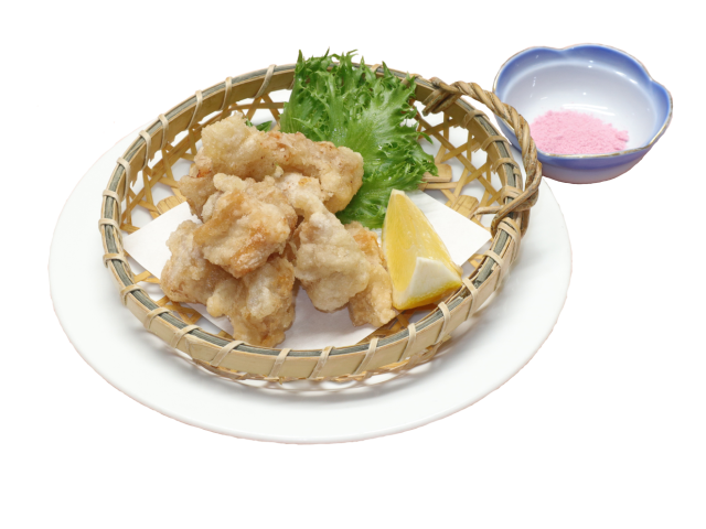 - 豚トロを唐揚げにして梅肉ソースでご提供します。